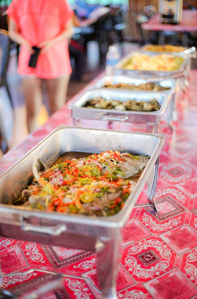 邦邦岛的餐厅不在海边,午餐和晚餐都是提供的套餐,沙拉、肉菜、蔬菜、主食、甜点均衡搭配。但可以免费加量,浪费的话是会罚款的噢。
