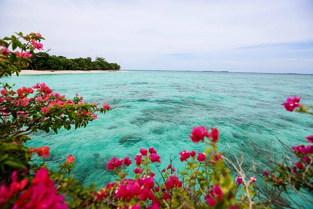 岛屿的三分之一被沙滩环绕,水面平静,沙滩浅白细软,浅水区有大面积珊瑚和各种的鱼类,在太阳的照射下能见度很高,是非常好的浮潜地点。