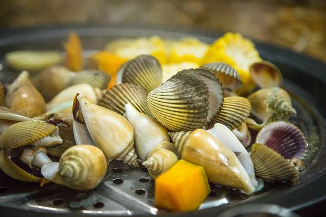 海鲜最能保持它原汁原味的做法就是清蒸了。国内的火锅都是鸳鸯或者红白的汤锅底,海鲜蒸汽火锅就是圆桌中间有一个蒸锅,将新鲜海鲜倒入锅中,盖上盖子闷几分钟就可以吃了。