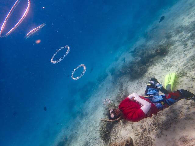 即使没有潜水证也可以委托潜水中心的教练帮你去水下寄,相信收到的人一定会觉得惊喜。