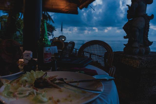 餐厅就在海边,villa里有几只猫,到了饭点自然而然的就会往餐厅里跑,虽然猫咪大概也知道不会有人给吃的,但还是叫的勤。
