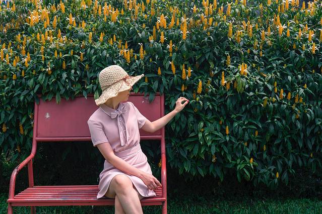 一对老外夫妻坐在画框里,刚好给我遇到了。