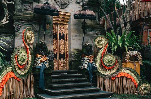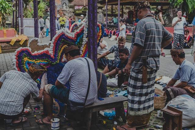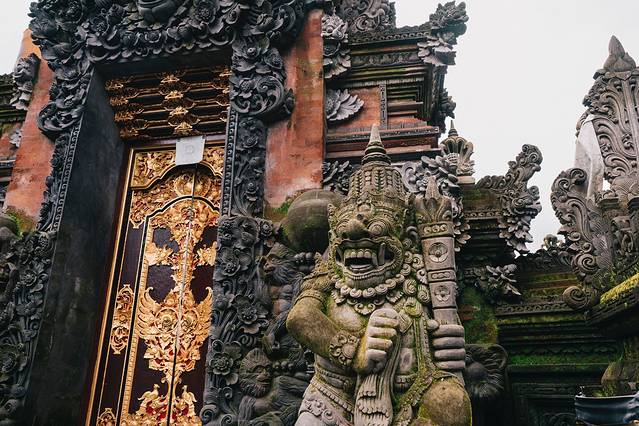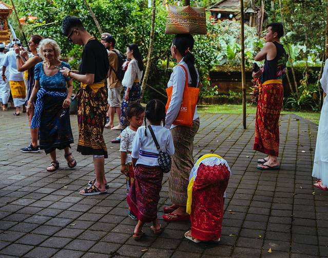 Kuta到Ubud应该一个小时出头,当然这是在理想状态下,然而物理老师告诉我们实际理想状态大多都是不存在的,花费了将近2个小时我们才到了乌布皇宫,乌布皇宫挨着乌布集市,皇宫并不大(准确说开放的区域),仅有最外面一层可以看,里面有多大就难以得知了,大概几分钟就可以看完了,很多当地人在这边帮忙做各种装饰。
