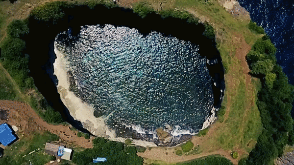 这个就是蓝洞,一个环形的海港,一侧有一个洞口,海浪会由此进来。