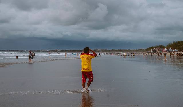 kuta海滩每天都是那么多人,虽然沙滩上并不干净,海水也并不清。