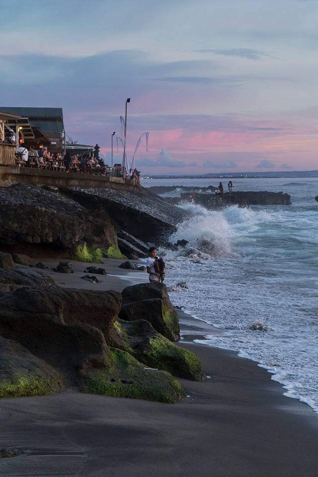 回程时,师傅把我们放在canggu海滩,canggu的朝西南,海浪不像kuta的温柔,这边更加的汹涌,清楚的看到海浪的力量。涨潮期间,海水并没有露出太多沙滩人们玩耍,玩冲浪的人们才是这片海滩的主角。
