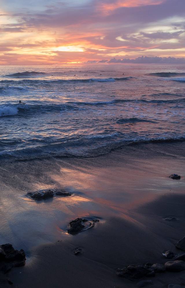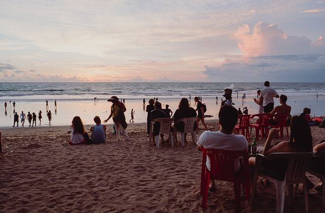 等到了日落时分,满天的色彩便又夺回了沙滩上人们的眼球,无论嬉戏的还是坐着喝酒聊天的。