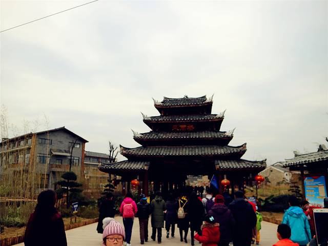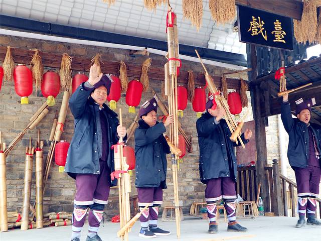 今天的第一个行程是名为桂林侗情水庄的景区,据导游介绍,这是政府为了穷困的山里的侗族人而兴建了一个侗族人的居住点同时也是旅游景点。带小朋友去看看还是挺好的,里面有侗族建筑特色的风雨桥、吊脚楼等、还会有侗族人为大家进行歌舞表演,展示侗族的民族文化。侗族据说是母系氏族社会,女人当家做主,接待我们的也是一位侗族大妈,让我们到她们的吊脚楼里参观了一下。