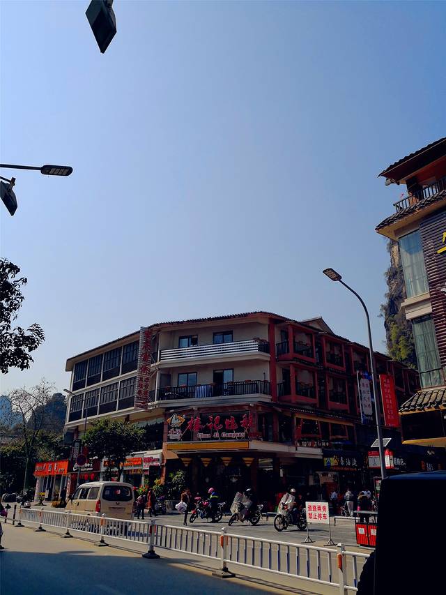 转眼已是中午,也该吃午饭了,我们搭着轮渡来到了对岸,跟着手机地图穿街走巷来到了著名的阳朔西街。