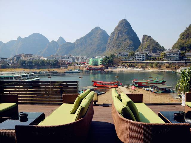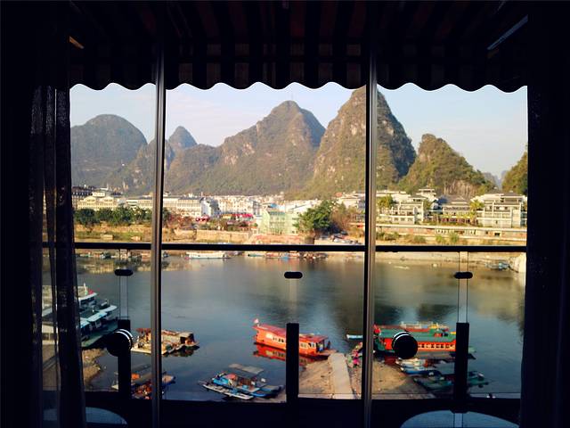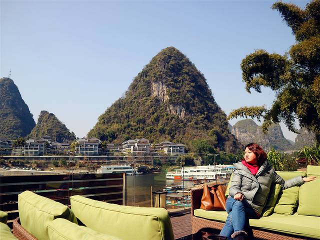 刚好,昨天爸爸妈妈赶了一天行程,也真的有点累了,我们当下决定,当天的行程缓一缓,饿了就坐着轮渡,到阳朔西街吃吃美食、困了就回来好好歇息一番。