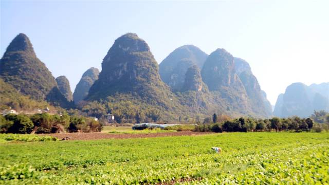 车子一路开去,景色果然很是不错,开阔的视野、碧绿的农田、一个个小馒头似的小山包,组合在一起感觉很魔幻。