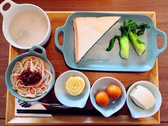 趁着我爸妈还没来,我们决定先带着孩子去吃饭。一路走、一路找,找到了一家还算合眼缘的餐厅。