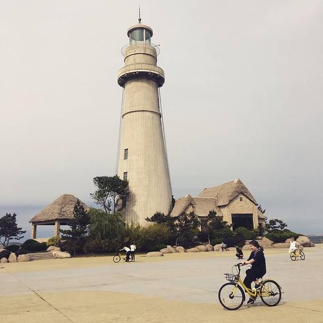 重要的是看风向,我和小伙伴这次是从 威海 公园开始骑的,整个逆风,到达 灯塔 的时候累瘫~