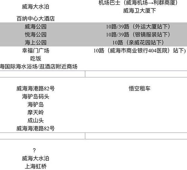 出发: 上海 到达: 威海