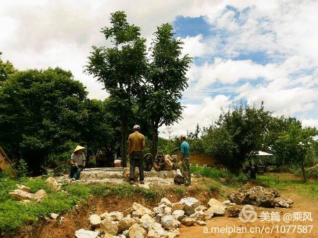 老板比工人还勤快,吃饭他最后一个回来,天不黑他不会下山。以匠人精神享受劳动。 有一大美女看见他双手在土里扒拉着不象泥巴的东西,问那是什么? “猪粪啰,香噶”,还捧起来吸一吸——当场晕死一大美女。 那是沤制过的粪土,我只闻着不臭,境界未及至香。 又:新挖的鱼塘抽干了水,峰哥下去不知道有什么好视察的,在抽水机的轰鸣中我隐隐听到了呼叫声,原来坡陡湿滑峰哥在塘底上不来了,我一路笑着找了根棍子把他拽上来,救人要紧顾不上拍照了??