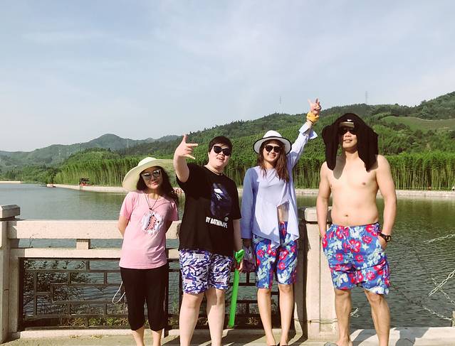 水枪大战!提醒各位,一定要人手一个!不然被围攻,真的是势单力薄!而且一定要一群人组团去,打起来才爽!途中,在经历第一个坡的时候,老公同学,扑通掉了下去,然后我家没有方向,只能随波逐流,停都停不下来!只得老公飞快游过来,期间由于河道里都是小石子,他的腿上好多都划破了,所以提醒各位,千万不要落船啊!另外拖鞋千万不要夹脚拖,因为水的阻力大,无法跟脚!