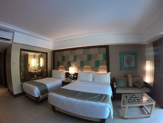 酒店离ALONA海滩距离1分钟,离塔比拉兰机场(Tagbilaran Airport)有15公里。最具特色的就是有很多游泳池,每个房间含2张餐券,早餐品种蛮丰富。房间是个套间,有浴缸书桌沙发,一大一小两张床,一家三口四口都是合适的。