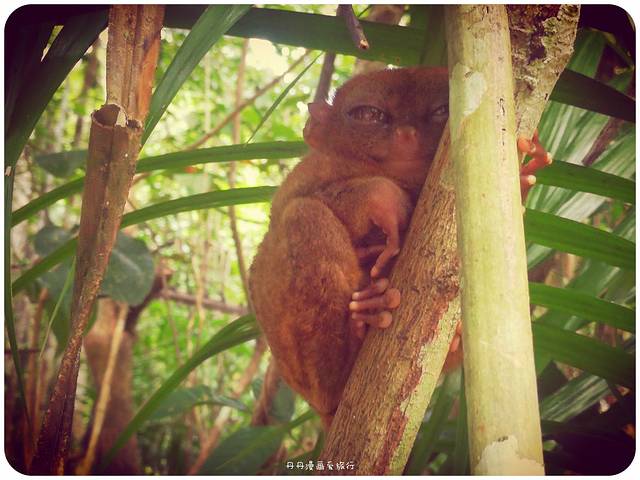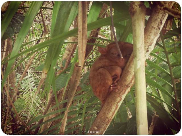 基本,它们都是不怎么挪动的。它们眯着眼,还面带微笑。小小的,很呆萌的样子。眼镜猴太太们一年只能产下一个宝宝,由于数量已经很少,越发显得娇贵了。它目前已经成为濒危动物。