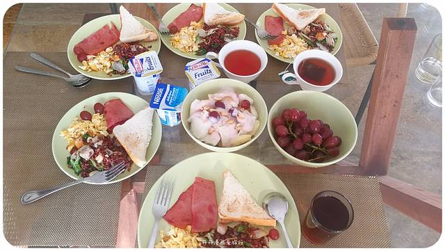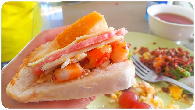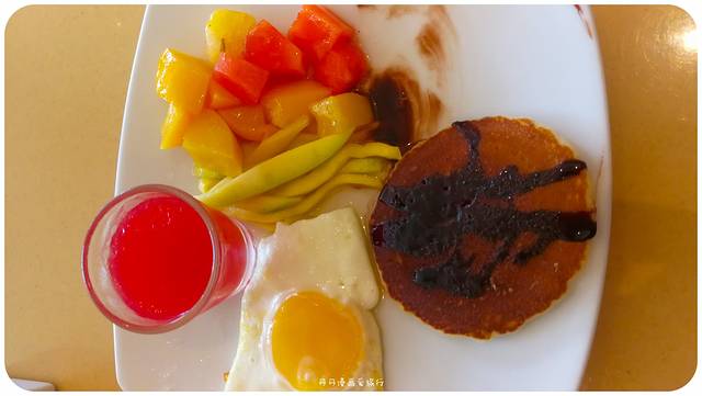 浮潜完了,回房冲了凉换了衣服,美美地到餐厅,享用了一顿早餐。