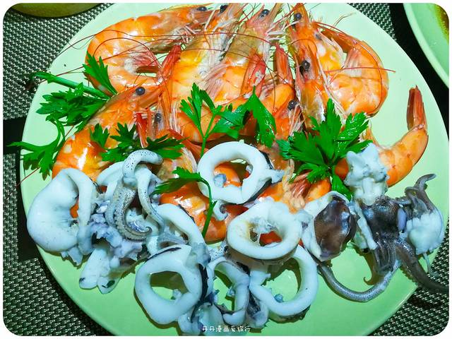 看着美景,我们在餐厅里享用一餐美味的海鲜。