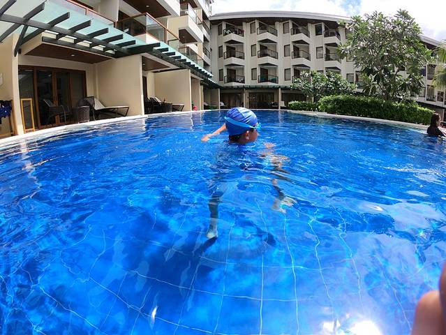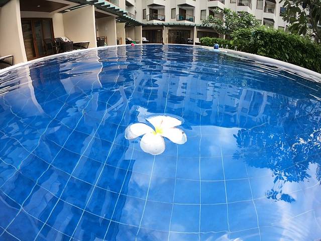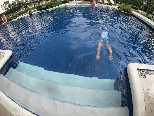 泳池的水清澈,有工作人员打扫。有种可以游到地老天荒的感觉。
