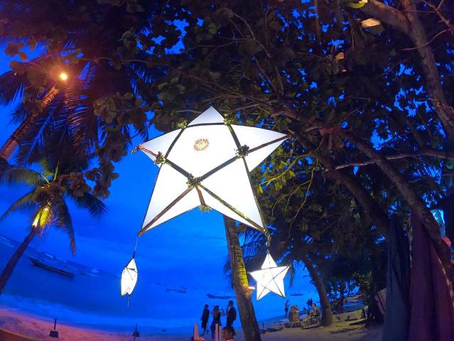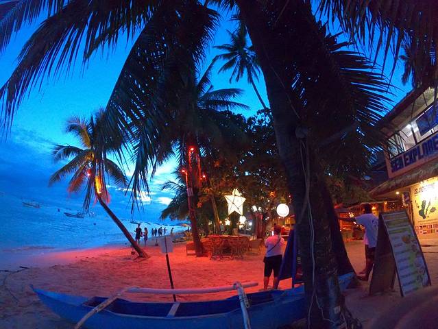夜晚的ALONA海滩,褪去白日的淡雅换了一身衣裳,一下变得妖娆了起来。