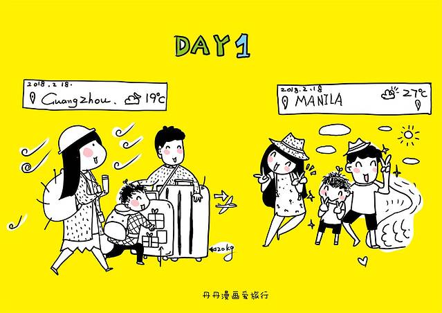 广州--马尼拉。航程2.5小时,凌晨01:50的飞机,04:15抵达。春节票价:单程3人含一个20KG的行李3886元。