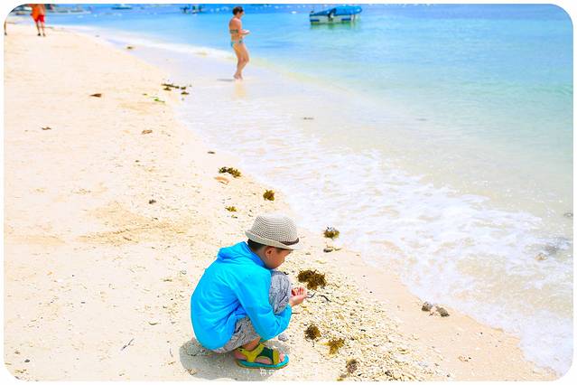 孩子说,捡个小贝壳回家,做纪念吧。许多著名的沙滩,贝壳是不能捡的,这里没有规定,但是,珊瑚肯定是不能带走的。