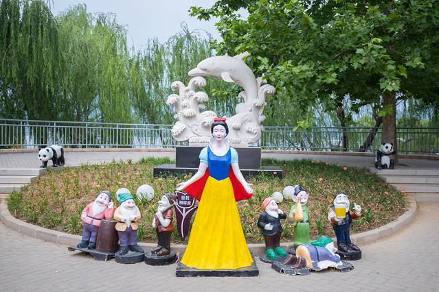 我们从园区步行前往咖啡厅,一路上看到各种充满童趣的雕塑、儿童游乐设施、水上大黄鸭等。如果天气好,还可以玩激流勇进。