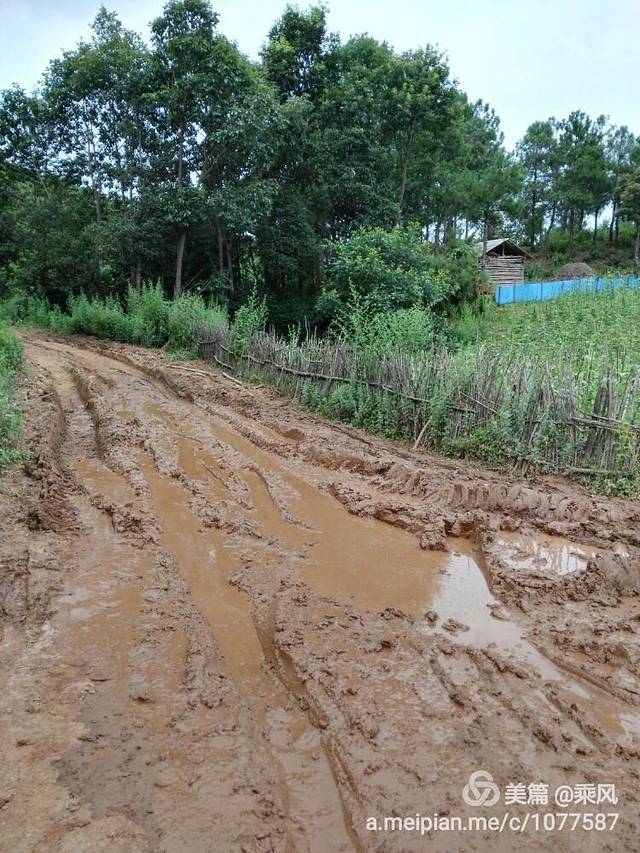 路就这个样子,下点雨就行不了车,还得靠马驼人背。