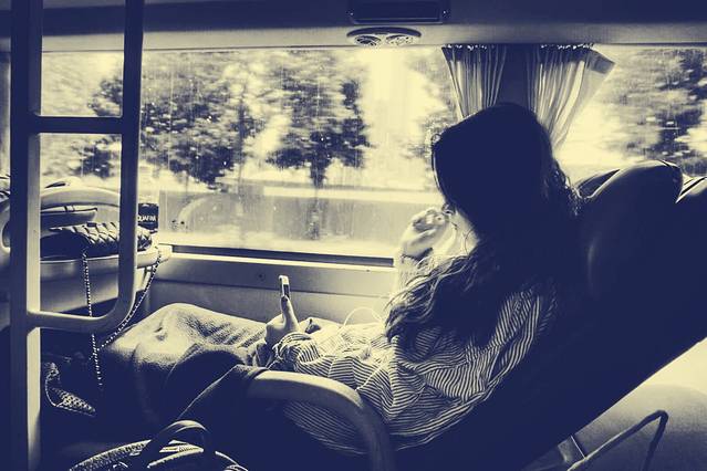 中午11:00左右的Sleeping Bus,折合人名币35rmb左右;在国内都没有坐过长汽的卧铺,