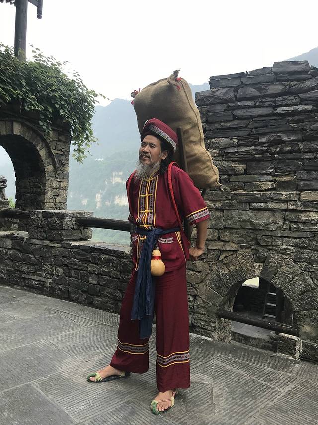 一路都是很漂亮的古寨子以及穿着当地特色服装的人