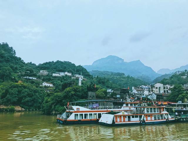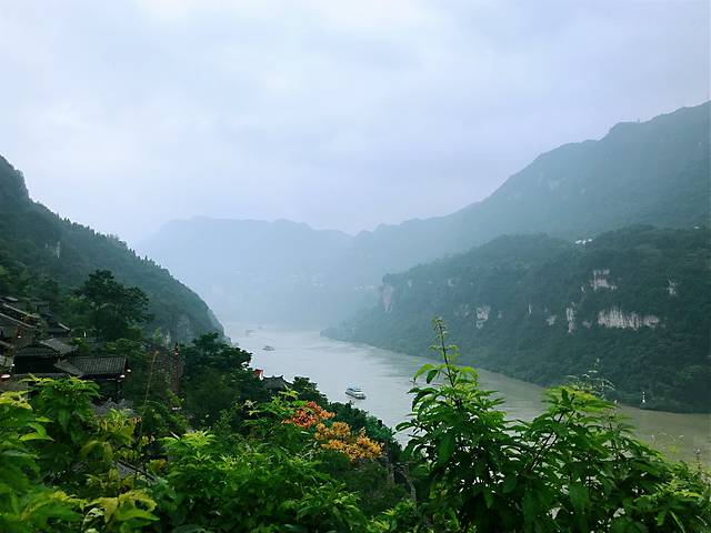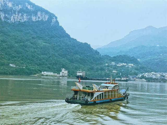 乘坐游轮开启今天的行程,一路都可以看到壮阔的三峡景观