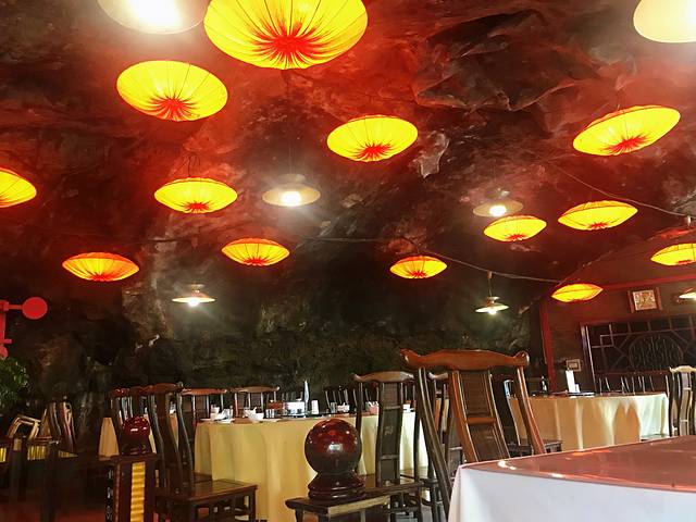 午餐在岩洞餐厅,沿着悬崖峭壁