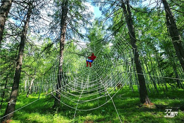 你看这个蜘蛛侠,躺在巨大的蜘蛛网上面,悠闲的那种感觉,绿树成荫呼吸着新鲜的空气,好不舒服。