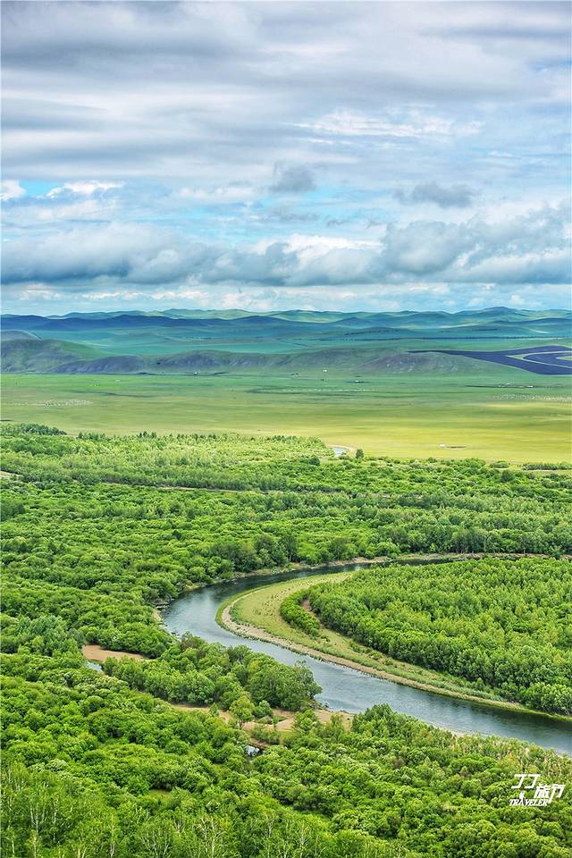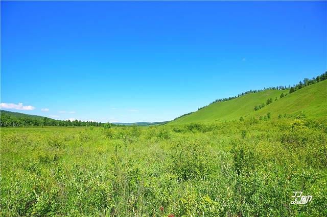 清澈的根河静静流淌,曲水环抱草甸,岸边矮树灌木丛生,绿意盎然;而秋季草木泛黄,远远望去是一片金色的大地,又是另一番壮美的景象。
