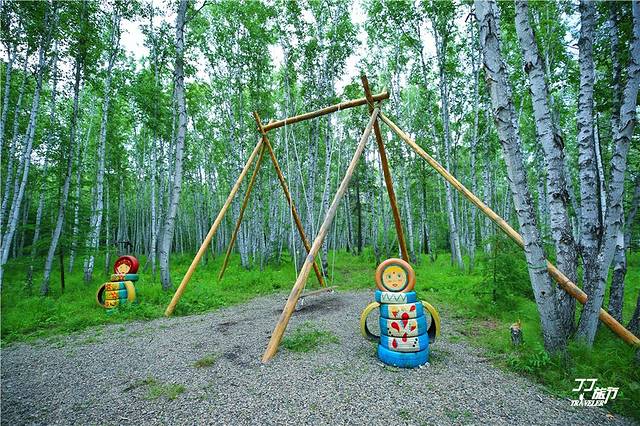 在嬉戏园可以体验射箭、“快马子”锯木头、林间秋千、独木桥等娱乐项目;观赏园有阔叶林过渡到针叶林的自然景观;有生态完好,蜿蜒曲折,堪称“森林曲水之最”的哈乌尔河景观。