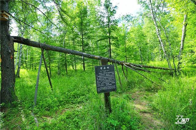 吊死鬼:吊死鬼是猎取鹿、狍子、狼、猞猁等野生动物的一种捕猎工具。其构造是在动物经常活动的林间小道上,把桦树弄弯,用碓的形式把树头固定好,然后栓上铁丝或油丝套,当动物路过时不小心钻进套内,挣扎时碰到铁链,弯树立起,把进套的动物吊起,使它活动不得,只得就擒。一般猎人会选择用白桦树做这样的捕猎工具,主要因为白桦树的柔韧性非常好,像现在这样即便是被弯成这样的弧度也不会被折断。