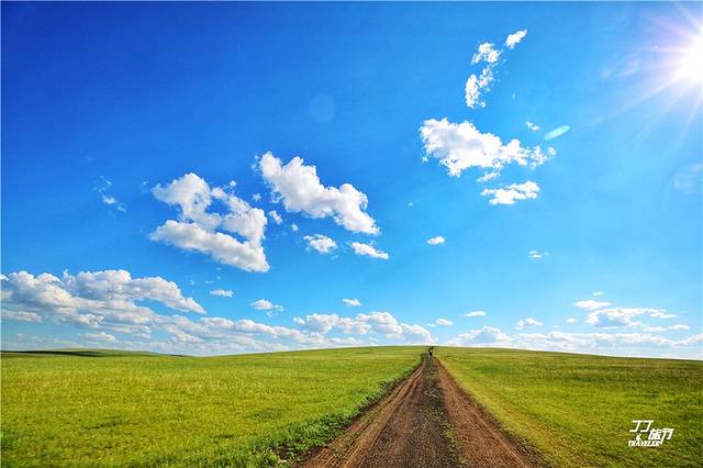 草原,抬头是湛蓝的天空,洁白的云朵,低头是无际的绿草,成群的牛羊,在风的陪伴下,骑着威风的马儿,驰骋在茫茫绿草之中。