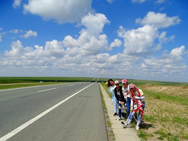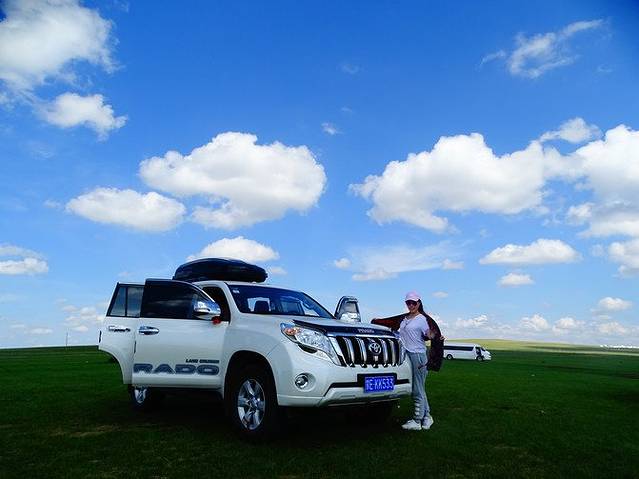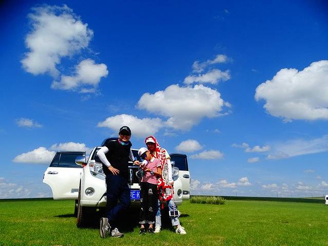 第二天,和我的小伙伴汇和,是来自广东湛江的一家人。一个话不多略显笨拙的大叔,一个亲切唠叨的大妈,以及一个美丽的小姐姐,姓夏。小姐姐说这次她是领着爸爸妈妈出来旅行,第一是圆父母一个草原梦,第二是庆祝父母结婚三十周年。天很蓝,大家也很开心,我心情略略的也振奋了些许。(关于拼车,在来之前,三叔在微信上问我愿不愿意跟人拼车,因为如果一个人一张车的话费用略高。我看了看羞涩的钱包,同意了。后来才觉得这个决定很英明,有人做伴,总会冲散心里的愁苦。)