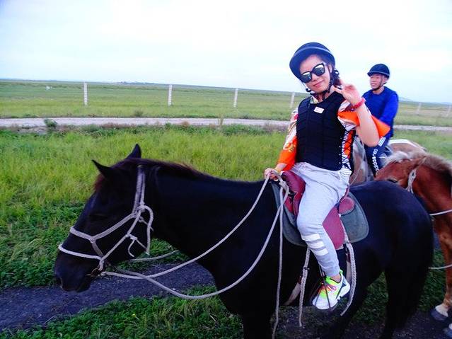 第一次骑马,小兴奋。想纵马奔驰,却颠得坐不稳,只好勒住马缰跟着队伍老老实实的缓步向前。PS:陪骑小哥很帅哟