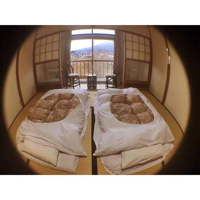 点评:在河口湖算是价格非常亲民的了,住惯了青旅的我们,共用浴室完全没有问题,只是浴室有严格的开放时间,需要注意,房间内有一个面盆可以洗东西,但是只有冷水。推开我们的房间后面,就能看见 富士山 ,想想这价格也的确超值了。
