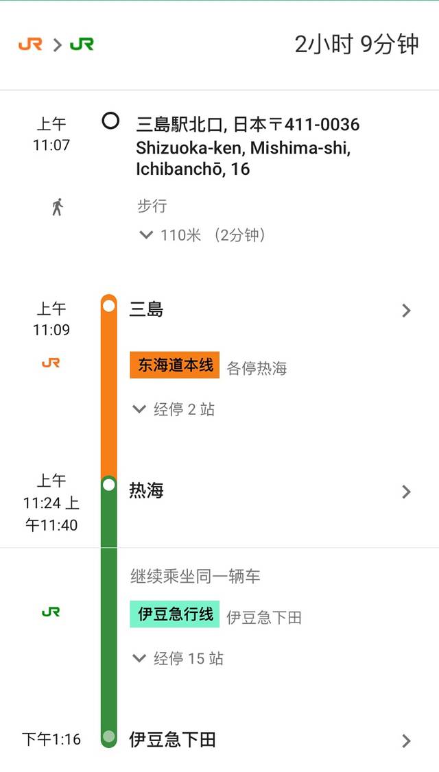 用案内换乘查询火车时刻与价格(其实Google Maps也是兼顾的)