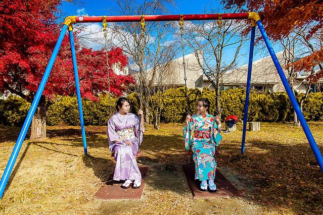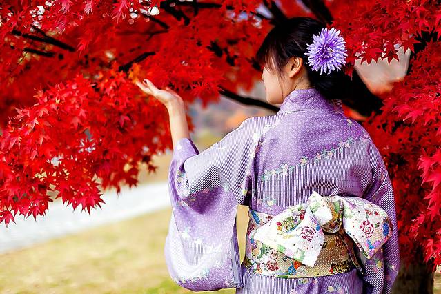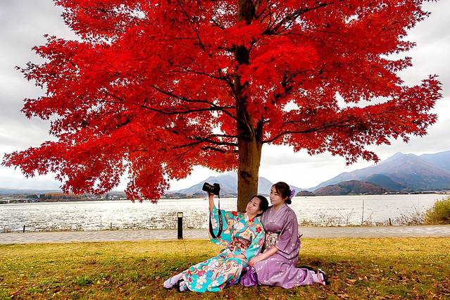之前有人问我河口湖租借和服的信息,其实我们是自己从国内带去的,这样就可以节约往返租借地点的时间了,而且想拍的时候都可以换上,唯一的缺点是我们自己不会做头发,于是我买了两朵颜色鲜艳的头花,希望能好看一点。 想租借和服的话,在 京都 和 东京 会方便一些,河口湖地区我们没有遇见这样的店铺。