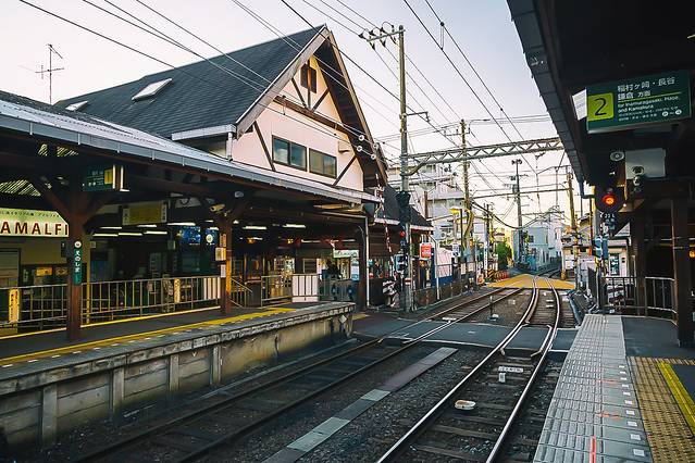 江之电是一条行驶于江之岛与 镰仓 之间的路面有轨电车,全程15站,单程最高300日元,我们购买了1 day tickets 每人700日元,开始这段漫无目的的旅程。