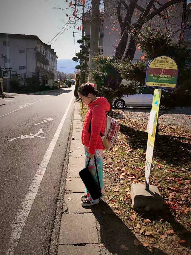 走出青旅就是河口湖周游巴士的站台,交通还是方便,只是车次比较少。