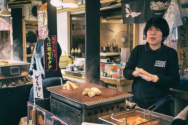 筑地市场是 东京 最大的传统鱼市场和蔬菜水果批发市场,集中了各色海鲜、蔬果、杂货店等。不过这里给我的感觉商业气息过于浓厚,基本全是游客穿梭其中,但是快要搬迁了,所以还是来大快朵颐一番。