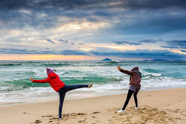 清晨我们起了个大早,相约去酒店后面的海滩看日出,早上风很大气温还有些低 ,但完全不影响我们看日出和拍照的心情。