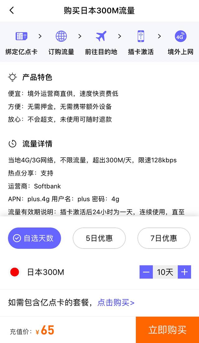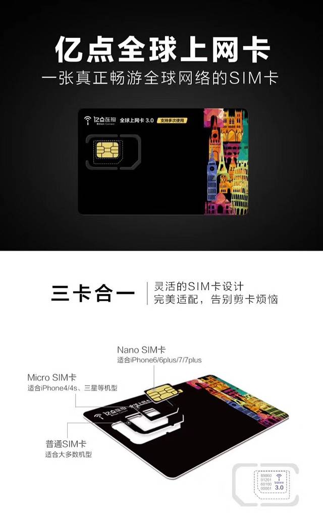 我们使用的是亿点连接上网卡,全球漫游,一张卡搞定,只需在手机上下载一个APP,并绑定卡号,在出发前订购目的地套餐即可(订购后的有效期为6个月,在有效期内激活就行),到达后插卡开机即可激活使用。