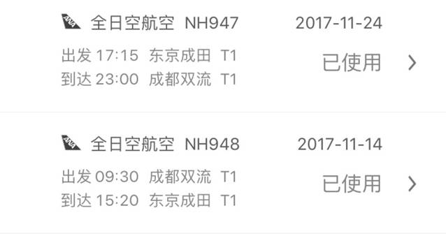 国 际: 成都 往返 东京 ,选择的五星航空全日空,提前三个月通过预订